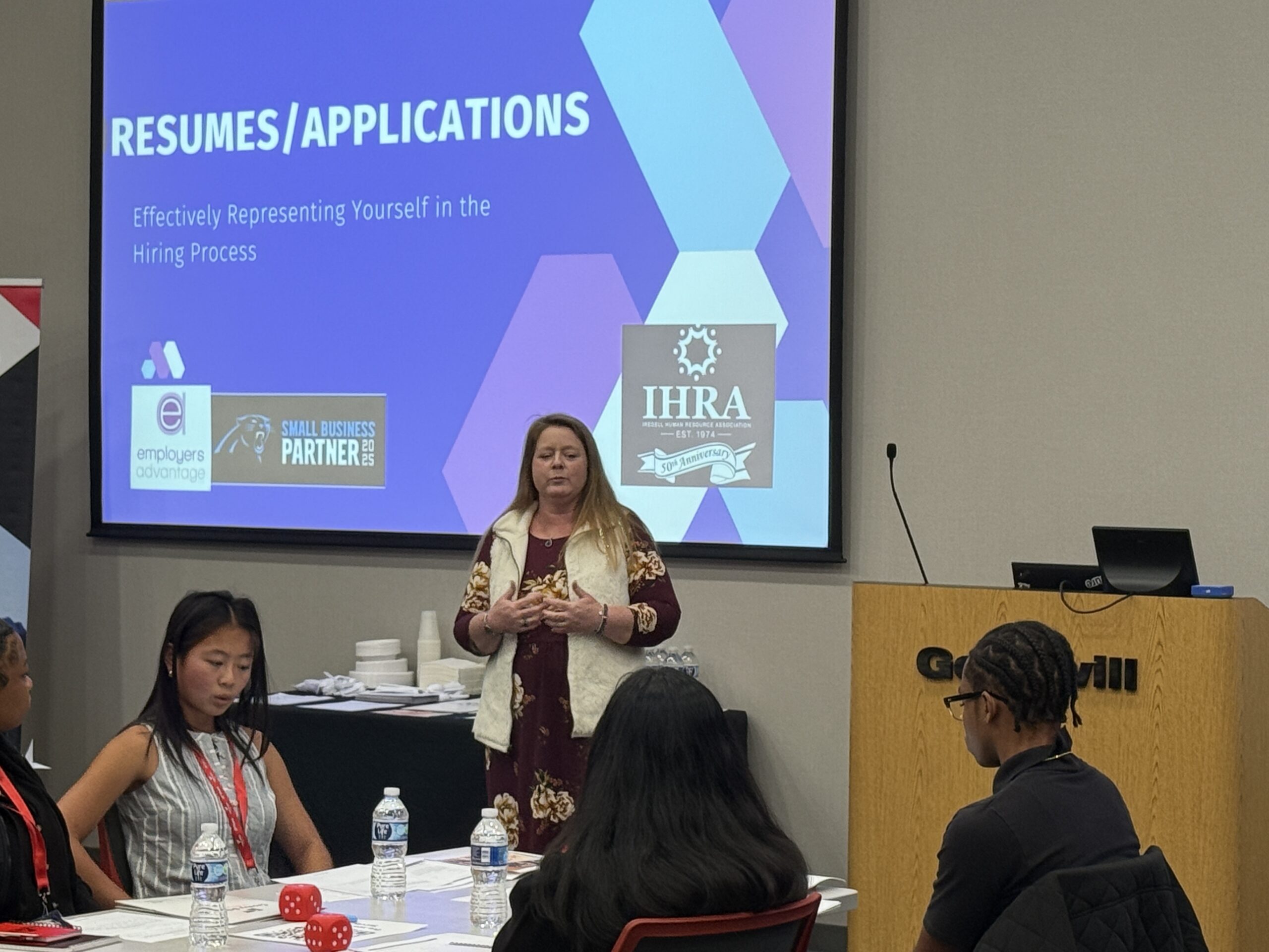 During this workshop, students learned from Human Resources professionals about resumes, table etiquette, appropriate dress for business functions and how to introduce themselves in a professional setting.
