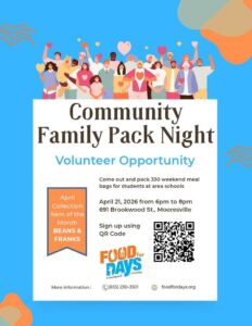 Come out and pack 330 weekend meal bags for students at area schools