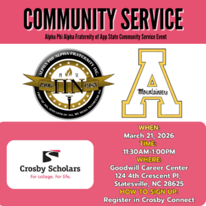 Join the Brothers of Alpha Phi Alpha Fraternity from Appalachian State University for a hands-on leadership workshop that will include a community service project. It happens at the Statesville Goodwill Career Center from 11:30am – 1pm.